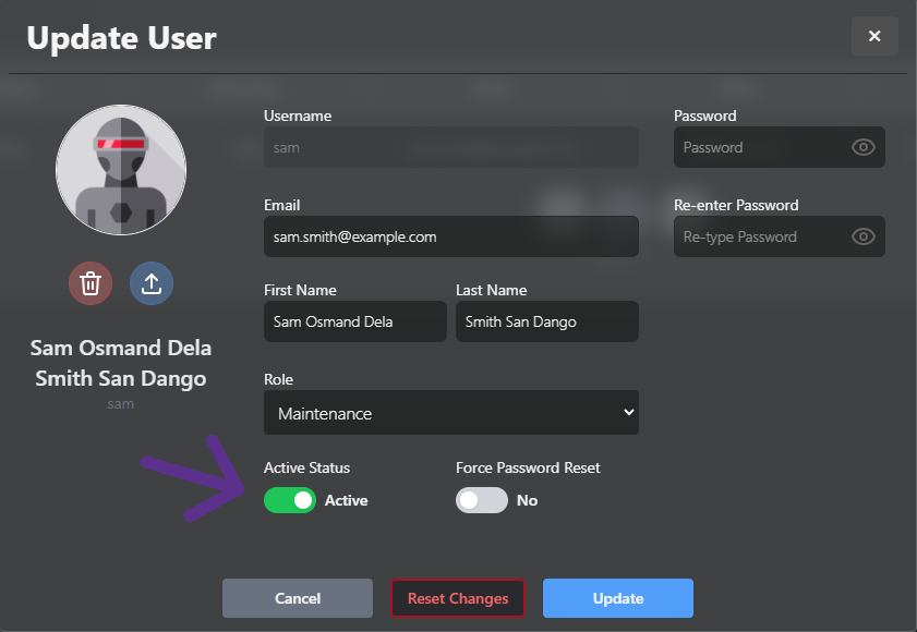 A user’s role is updated to reflect a new level of access without creating a new account.