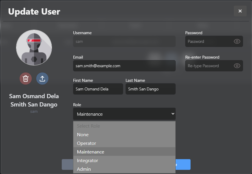 Example: A Maintenance Lead may update another Maintenance Lead.
